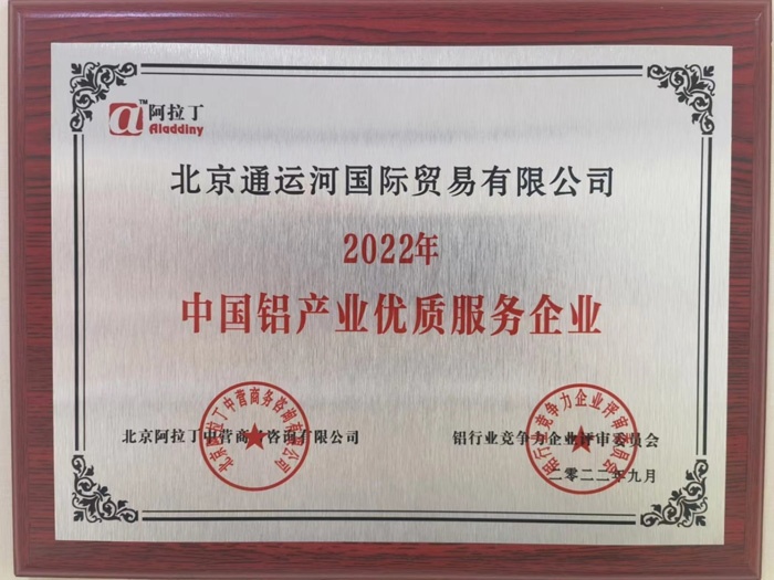 公司荣获“2022年度中国铝产业优质服务企业”
